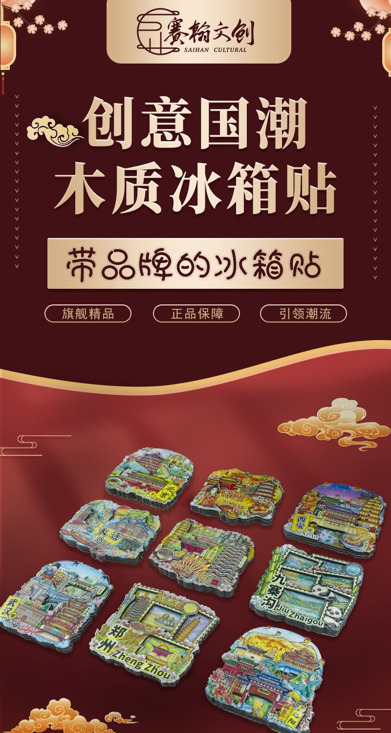 Guochao City 3D Wooden Epoxy Refrigerator Sticker